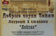 2 декабря в Культурном центре "Залесный" прошел Всероссийкий конкурс искусств "Добрые звуки Земли". Хореографический коллектив "Лейсан" (рук. - Ф.М. Хамидуддина) стал Лауреатом 2 степени! Поздравляем!