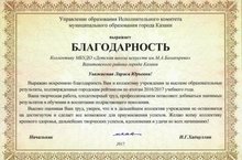 Благодарственное письмо Управление образования ИКМО г.Казани 10.10.2017