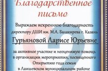 Учащиеся ДШИ им. М.А.Балакирева приняли участие в мероприятии, посвященного Открытию года семьи в Лаишевском муниципальном районе, за что руководство Районного Дома культуры города Лаишево выражает благодарность!