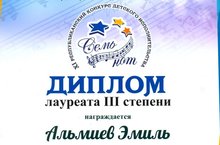 Поздравляем учащегося 2 класса Альмиева Эмиля, ставшего Лауреатом III степени (преп. Валиуллин З.Р., Савастьянова Н.Н.) и желаем дальнейших побед!