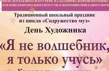 На отделении изобразительного искусства и декоративно-прикладного творчества прошел конкурс "Я не волшебник, я только учусь" в рамках традиционного школьного праздника "День художника". В этом году конкурс был организован на самое оригинальное исполнение натурной постановки. Большой рыжий кот, отдыхающий на камине; красочный Арлекин, играющий разноцветными шариками и расшитое золотыми орнаментами красно-чёрное платье составили содержание трех сложных натурных постановок, которые должны были интерпретировать наши участники.