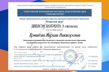 В рамках Всероссийского фестиваля педагогических идей «Грани мастерства» заведующая отделением специального фортепиано, преподаватель высшей квалификационной категории Ермакова Марина Викторовна стала Лауреатом III степени Конкурса профессионального мастерства педагогов учреждений художественного образования «Открытый урок»! Также в рамках конкурса стала обладателем Диплома за творческую самопрезентацию «Визитная карточка». Поздравляем!