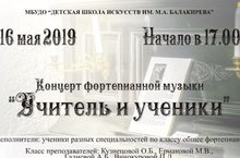 16 мая в Казанской Балакиревке прошел концерт фортепианной музыки "Учитель и ученики". На камерной сцене выступили учащиеся разных специальностей по классу общего фортепиано преподавателей М.В. Ермаковой, О.Б. Кузнецовой, А.Б. Галиевой, П.Д. Винокуровой. Также в программе прозвучал "Концерт-рапсодия" Р. Яхина - Р. Абязова в исполнении преподаваеля Галиевой Айгуль Булатовны.