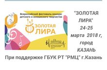 24 – 25 марта 2018 года в ДШИ № 15 Ново-Савиновского района г.Казани при поддержке ГБУК РТ «РМЦ» проходил Всероссийский фестиваль-конкурс детского и юношеского творчества «Золотая Лира», в котором приняли участие учащиеся ДМШ №7 им.З.В.Хабибуллина.По результатам фестиваля-конкурса:Гришин Кирилл (преподаватель – Нурмухаметова Л.И.) – Дипломант I степени;Зиязетдинова Рената (преподаватель Перетягина И.Ф.) – Дипломант I степени.ПОЗДРАВЛЯЕМ!!! -