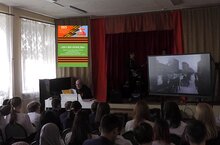 Для учащихся 8 классов с песнями времён Великой Отечественной войны и произведениями современных авторов о военных конфликтах выступил вокально-инструментальный ансамбль «Анкор» ДМШ №7 им.З.В.Хабибуллина (художественные руководители – Хабибулин Р.Н. и Закиров А.А., участники – учащиеся отделения эстрадного (инструментального) искусства: Иванов Артур, Крылов Илья, Лесников Артём, Рахимова Дана, Сафин Таир).