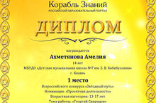 - Ахметянова Амелия – I место за творческую работу «Георгий Свиридов»;