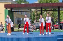 Праздничную атмосферу на площадке создавали разнообразные творческие коллективы. Среди них в концертной программе мероприятия выступили с яркими и запоминающимися номерами учащиеся отделения эстрадного (вокального) искусства нашей школы – ансамбль «Капучино» (художественный руководитель – Валеева Р.С.).