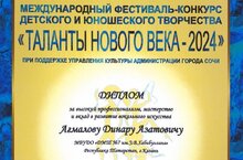 - в номинации «Начинающий артист». Возрастная категория: 8 – 10 лет», Мустафина Дина – Лауреат II степени;