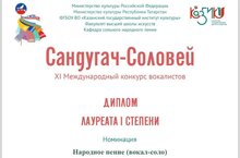 2 марта 2024 года в ФГБОУ ВО «Казанский государственный институт культуры» под эгидой Министерства культуры Российской Федерации и Министерства культуры Республики Татарстан, состоялся XI Международный конкурс вокалистов «Сандугач – Соловей», в котором приняли участие учащиеся фольклорного отделения нашей школы (преподаватель – Мубаракова А.Я.).