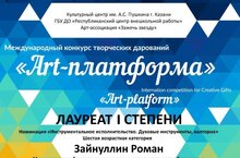 25 февраля 2024 года в Культурном центре имени А.С.Пушкина г.Казани под эгидой ГБУДО «Республиканский центр внешкольной работы» и Арт-ассоциации «Зажечь звезду» состоялся Международный конкурс творческих дарований «Art-платформа».
