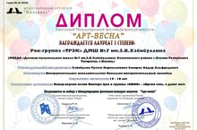 По результатам конкурса, преподаватель фольклорного отделения нашей школы, Мубаракова А.Я. – Лауреат I степени.