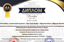 По результатам конкурса, в номинации: «Инструментальное исполнительство», категории: «Учитель и ученик», ансамбль этнической музыки «The Irish Snake» ДМШ №7 им.З.В.Хабибуллина (руководитель – Хабибулин Р.Н., учащиеся – Ибраев Артём, Крылов Илья) – Лауреат I степени.