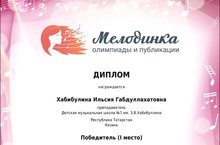 17 мая 2022 года состоялся Всероссийский онлайн-конкурс «Мелодинка. Олимпиады и публикации», в котором приняли участие преподаватели нашей школы.