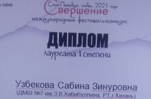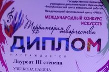 - в номинации «Инструментальное исполнительство, соло, 8 – 11 лет», Узбекова Сабина – Лауреат III степени.