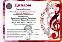 - в номинации «Инструментальное исполнительство», дуэт преподавателей нашей школы Волченко Л.П. и Романова И.П. – Лауреат I степени.