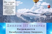 - Насыбуллин Дамир (преподаватель – Романова И.П.) – Лауреат III степени;