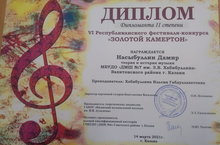 - в номинации «Теория и история музыки», Насыбуллин Дамир (преподаватель – Хабибулина И.Г.) – Дипломант II степени;