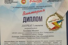 Поздравляем Хамзину Милану и ее преподавателя Гизатуллину Камилю Лемаровну с отличным результатом в XII Международном конкурсе детского и юношеского творчества " Виктория" . Милана стала Лауреатом 1 степени!
