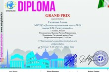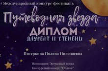Поздравляем Питеркину Полину и её преподавателя Валиеву Ригину Рифинатовну с победами в 2х Международных конкурсах: " Путеводная звезда", где она стала Лауреатом 2 степени и " Надежды Европы"( Лауреат 3 степени)!