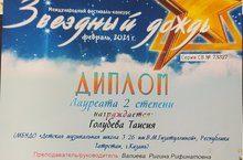 Поздравляем Голубеву Таисию и её преподавателя Валиеву Ригину Рифинатовну со званием дважды Лауреата 2 степени сразу в двух международных конкурсах - " Звёздный дождь" и " Золотая лира"!