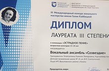 Поздравляем вокальный ансамбль "Созвездие" (руководитель Камиля Лемаровна Гизатуллина), лауреата III степени III Международного конкурса вокального мастерства имени Галии Кайбицкой!