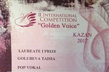 Поздравляем лауреата I степени II Международного конкурса Golden Voice Голубеву Таисию и преподавателя Р.Р.Валиеву!