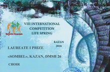 20 марта 2016 года хор ДМШ №26 "Сомбель" (руководитель Камиля Гизатуллина, концертмейстер Екатерина Козлова) успешно выступил на VIII Международном конкурсе "Живой родник" и был награждён Дипломом лауреата 1 степени! По решению жюри конкурса, хор получил приглашение на участие в Международном конкурсе "Viva-music" в Черногории с 25.06-02.07.2016!