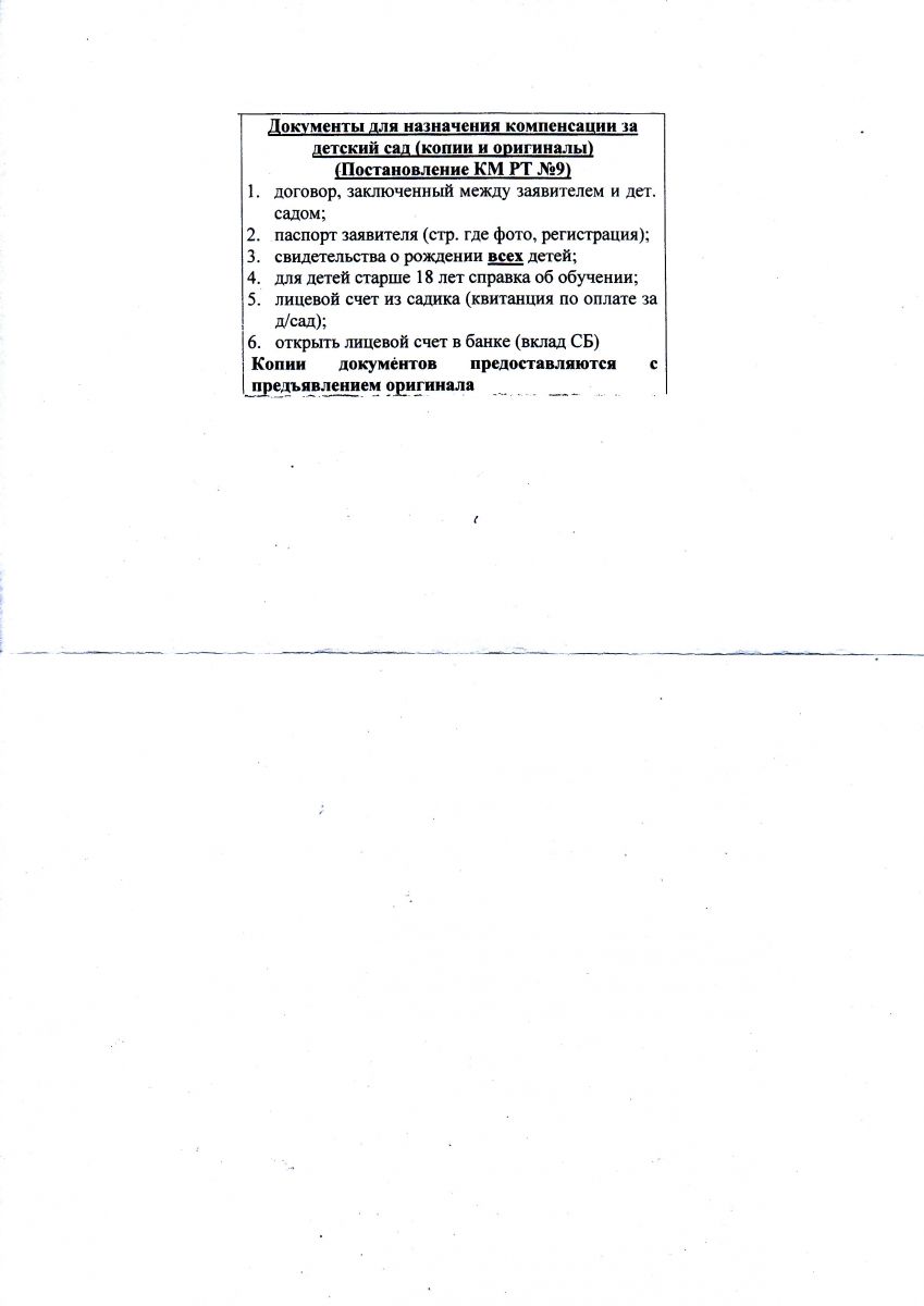 Документы для назначения компенсации за ДОУ