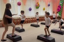 Зурлар һәм мәктәпкә әзерлек төркемендә степ - аэробика түгәрәге.⠀ -