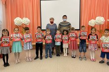 Бакчабызның бүгенге кунагы, күп кешегә таныш булган Алмаз Гараев иде. Ул кызы, ассистент Зөбәйдә белән безгә грамота өйрәнү шөгельендә "Күңелле әлифба" буенча хәрефләр белән таныштырды. Кунагыбыз буш кул белән килмәгән - балаларга ул шушы китапларны бүләк итте. Бу китап чыннан да гади түгел - мавыктыргыч, төсле рәсемнәр затлы кәгазьдә бастырылган, ә балага стимул булып, хәреф өйрәнгәч мультфильм карап була, үзегез дә күргәнсездер инде. Алмаз әфәнде белән Зөбәйдә туташка безнең бакча һәм балалар исменнән рәхмәтебезне белдерәбез.