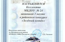 Коллектив нашего детского сада участвовал в районном конкурсе по правилам дорожного движения "Зеленый огонек" и занял 1 место. Поздравляем победителей!!!