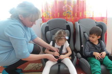 Наши воспитанники ежедневно изучают правила поведения на дорогах, на транспорте,в машине, и как пользоваться детским автокреслом, который является основным средством сохранения жизни и безопасности детей. Дети знакомятся как правильно пристегивать (отстегивать) ремни безопасности, и как себя вести во время движения в автомобиле. Благодаря таким обучающим занятиям, дети пополняют свой запас знаний о правилах поведения на дорогах, котрые им пригодятся в будущем.