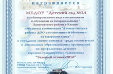 Наш детский сад стал победителем в городском смотре-конкурсе среди воспитателей и дошкольных образовательных организаций по профилактике детского дорожно-транспортного травматизма "Зеленый огонек-2016" в номинации "Лучшая система работы ДОО с воспитанием и обучением на татарском языке" . Поздравляем!!!