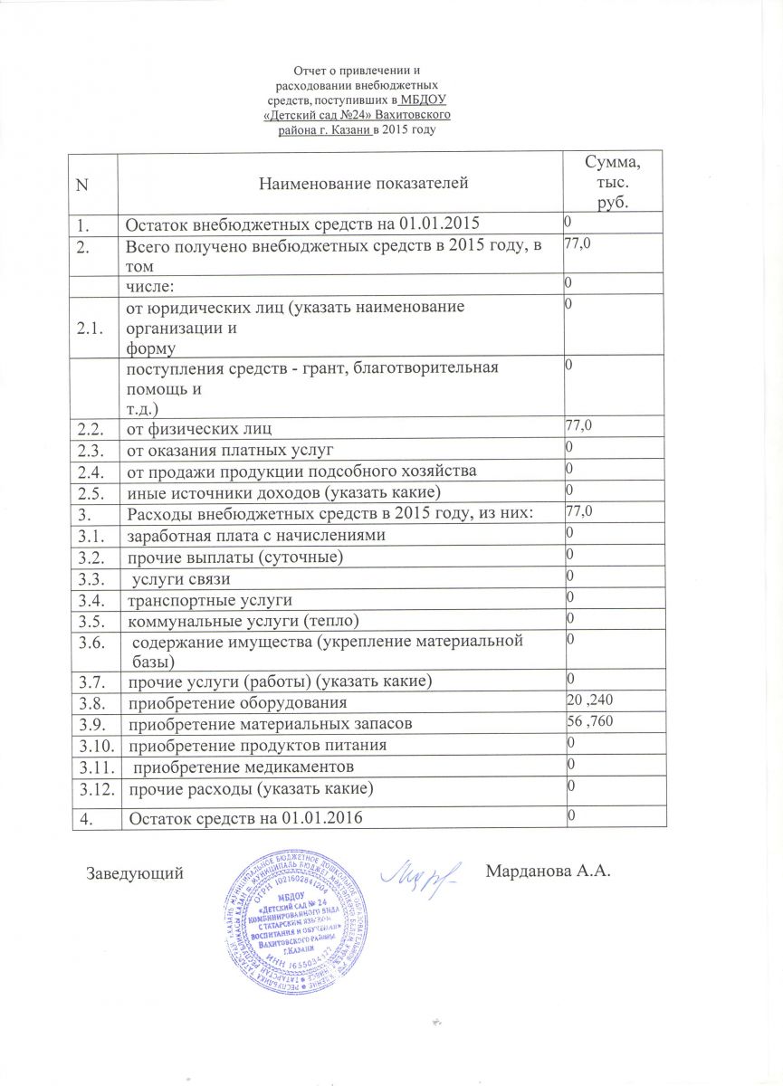 Отчет о привлечении и расходовании внебюджетных средств за 2015 год
