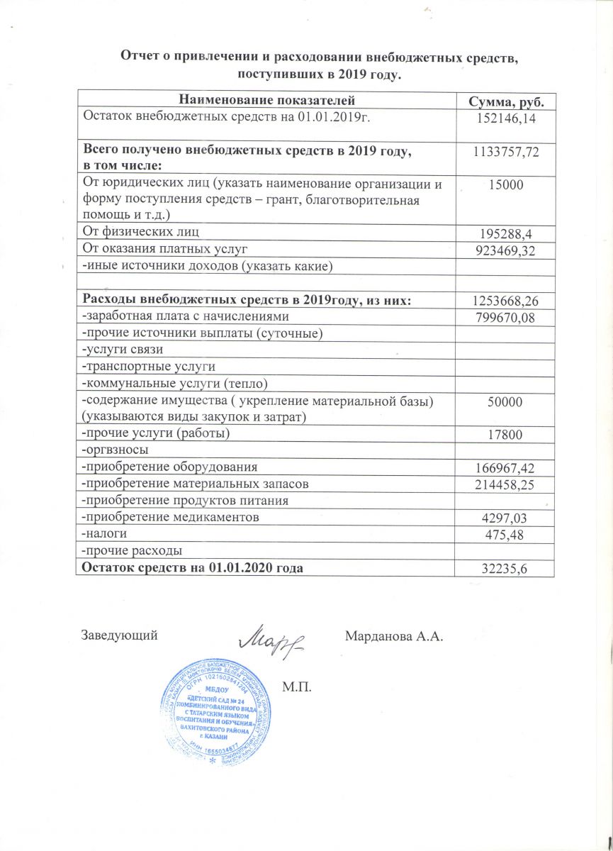 Отчет о привлечении и расходовании внебюджетных средств за 2019 год