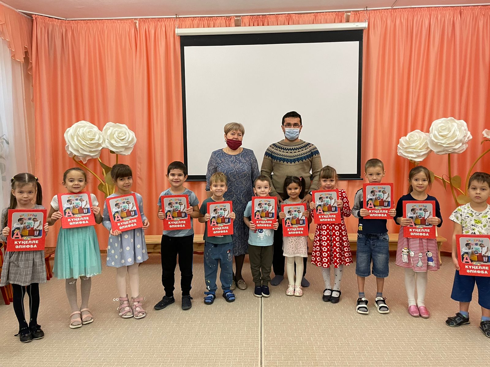 Опубликовано: 06.12.2021Бакчабызның бүгенге кунагы, күп кешегә таныш булган Алмаз Гараев иде. Ул кызы, ассистент Зөбәйдә белән безгә грамота өйрәнү шөгельендә "Күңелле әлифба" буенча хәрефләр белән таныштырды. Кунагыбыз буш кул белән килмәгән - балаларга ул шушы китапларны бүләк итте. Бу китап чыннан да гади түгел - мавыктыргыч, төсле рәсемнәр затлы кәгазьдә бастырылган, ә балага стимул булып, хәреф өйрәнгәч мультфильм карап була, үзегез дә күргәнсездер инде. Алмаз әфәнде белән Зөбәйдә туташка безнең бакча һәм балалар исменнән рәхмәтебезне белдерәбез./upload/storage/org2847/files/IMG_4142.JPG
