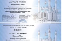 Поздравляем воспитанника старше-подготовительной логопедической группы Шайхуллина Степана и воспитанницу старше-подготовительной татарской группы Шаяпову Миру с победой в Международном конкурсе вокалистов и чтецов «Голос Татарстана» ! Молодцы!