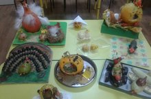 В нашем детском саду прошла выставка "Осенняя фантазия" из овощей и листьев. Очень оригинальные поделки были сделаны и определены призовые места.
