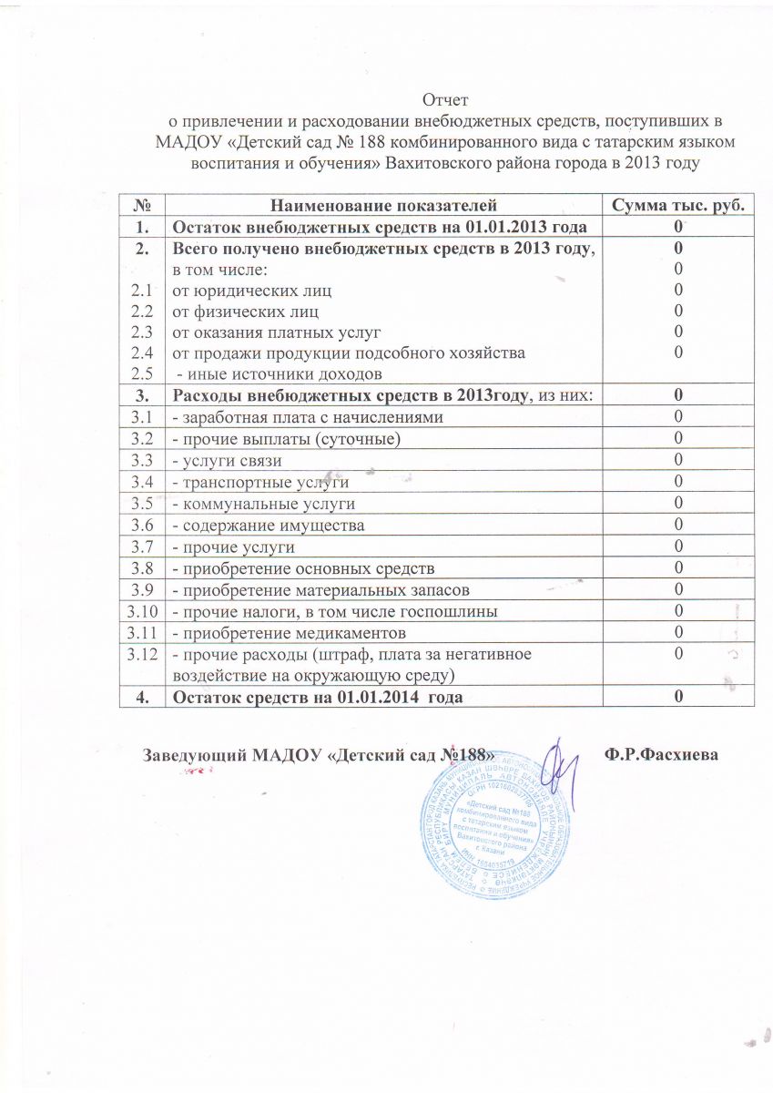 Отчёт о привлечении и расходовании внебюджетных средств за 2013