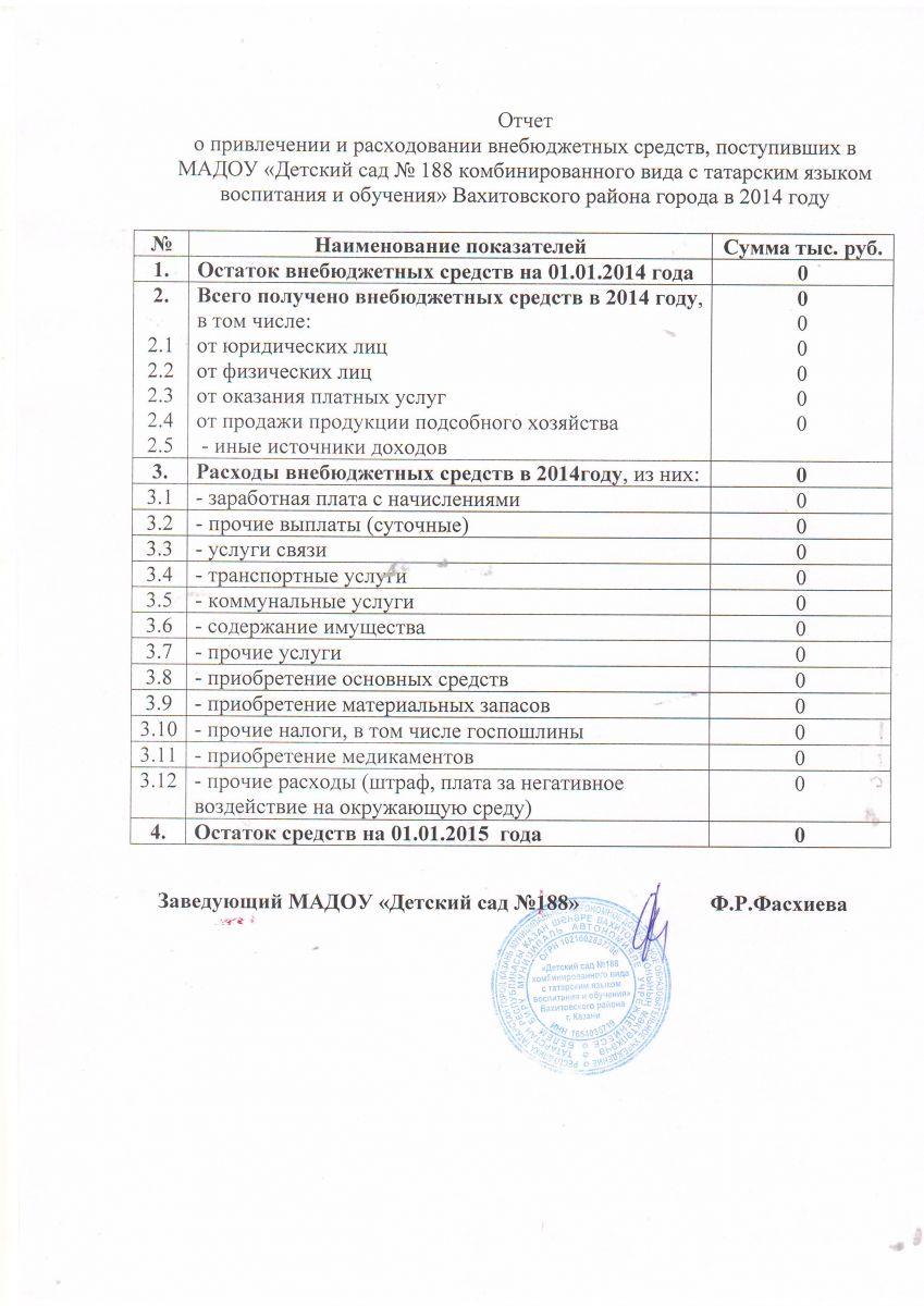 Отчёт о привлечении и расходовании внебюджетных средств за 2014