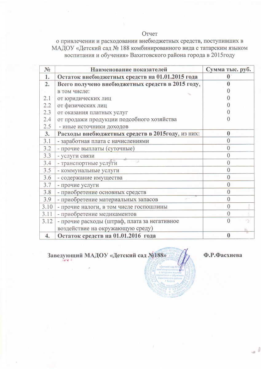 Отчёт о привлечении и расходовании внебюджетных средств за 2015
