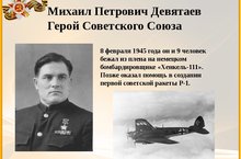 Сотрудники нашего детского сада приняли участие в торжественном митинге к 100-летию со дня рождения легендарного летчика, Героя Советского Союза Михаила Девятаева, состоялся в речном порту Казани. На митинге собрались ветераны флота, коллеги знаменитого капитана и студенты речного техникума. На мероприятии присутствовал и сын героя Александр Девятаев. Он рассказал о своей мечте, чтобы в речном порту, откуда начинается улица Девятаева, появился памятник легендарному летчику.