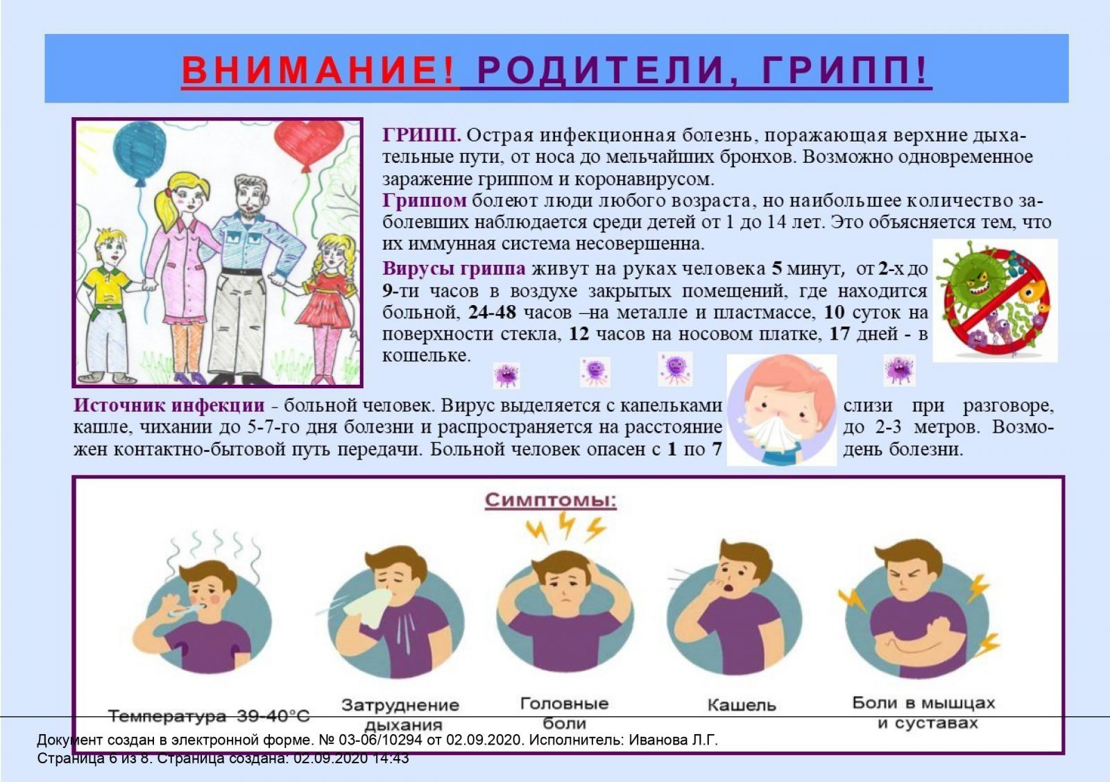 Более подробную информацию Вы можете просмотреть пройдя по ссылке Памятка по гриппу!