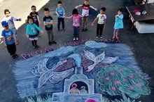 Наши воспитанники совместно с воспитателями принимают участие в конкурсе рисунков на асфальте "Мое безопасное детство"
