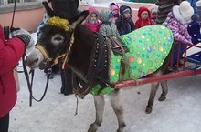 В наш детский сад приехал ослик. Ребята познакомились с ним, угостили лакомством, а потом весело прокатились.