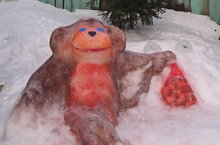 В детском саду объявлен конкурс на лучший зимний участок. На участке старше-подготоивтельной группы нас встречает обезьянка - символ года!