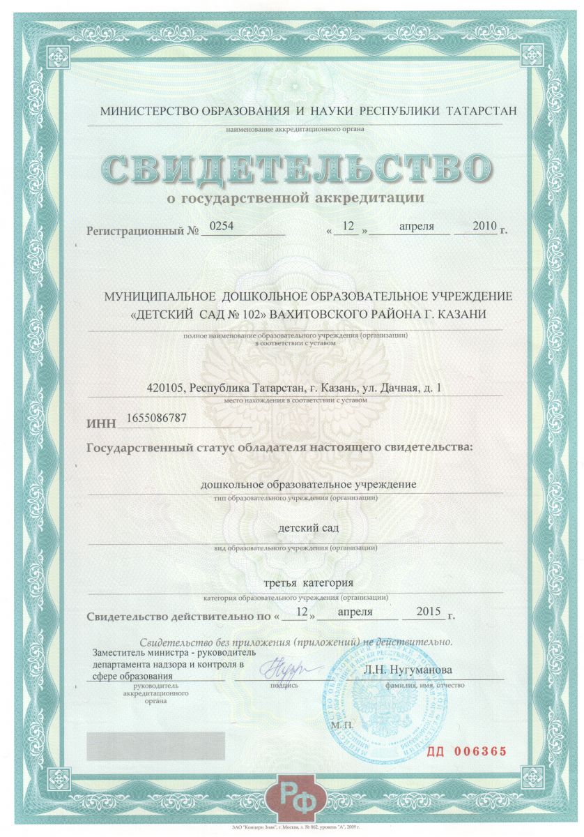 Свидетельство о государственной аккредитации