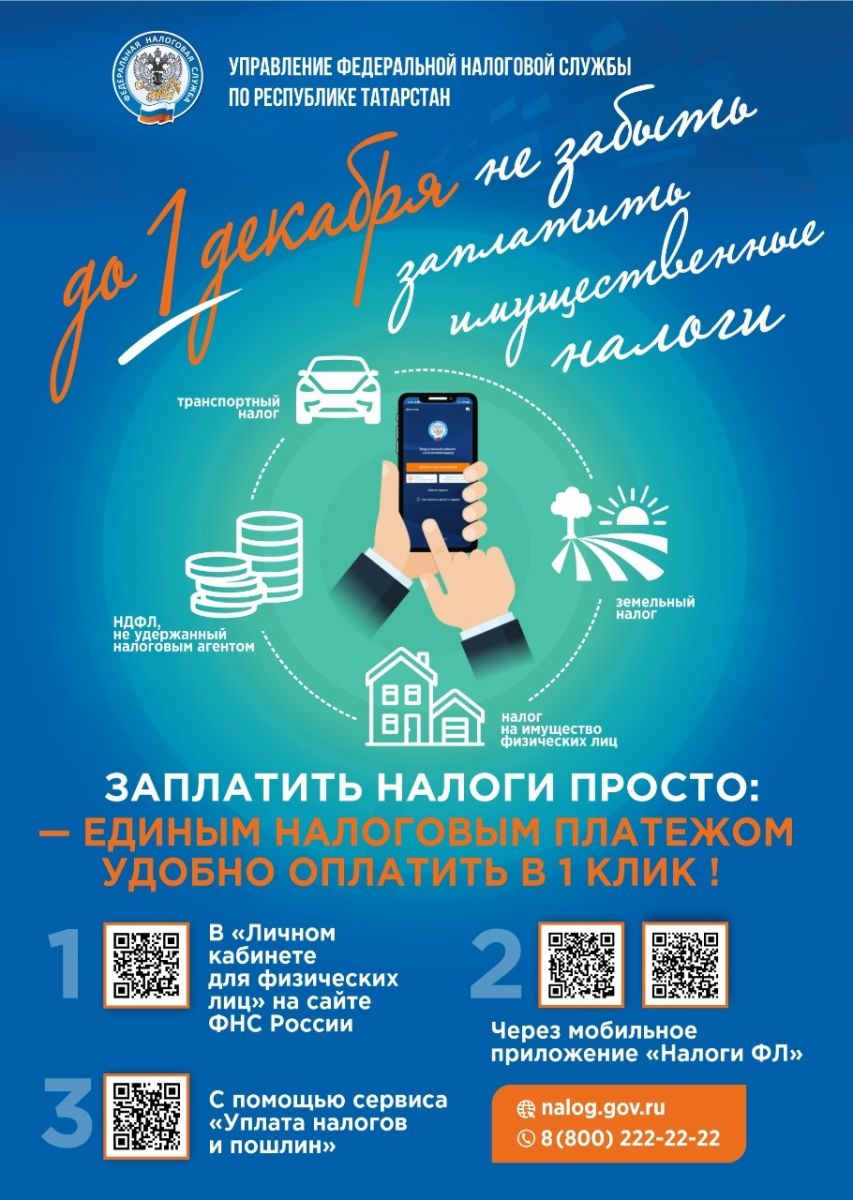 УФНС России по Республике Татарстан информирует о приближении срока уплаты физическими лицами имущественных налогов за 2021 налог.jpeg налоги.jpeg