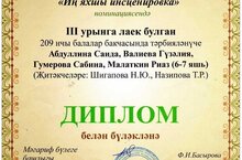 Бөек татар шагыйре Габдулла Тукайга багышланган "Күңелебездә, телебездә, йөрәкләрдә Тукай мәңгелек!" исемендәге район бәйгесенең "Иң яхшы инсценировка" номинациясендә бездә тәрбияләнүче балалар III урынга лаек булдылар.