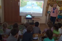 Сегодня в ДОУ ведущим специалистом отдела профилактики ТУ г.Казани ГБУ БДД Музафаровой З.В. для детей подготовительной группы ДОУ было проведено занятие с детьми с показом мультфильмов